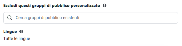 - Aggiungi le Esclusioni: in basso, alla voce “Escludi”, puoi inserire il pubblico che non deve assolutamente vedere questa inserzione.