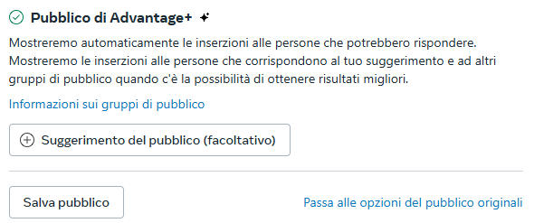 Anche qui, l’unica via per essere sicuri è testare: puoi lanciare una campagna con Pubblico Advantage+ e un’altra con un Pubblico originale molto mirato, confrontandone i risultati.