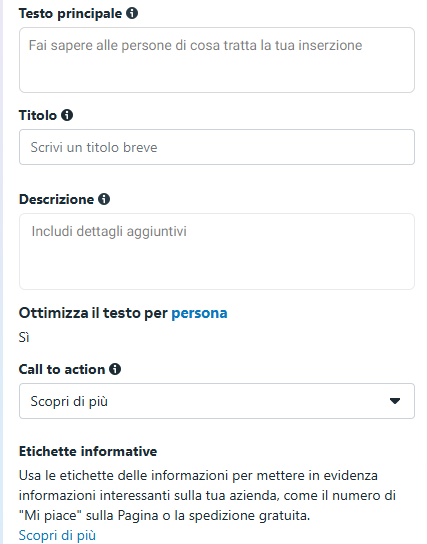 - Testo Principale (Primary Text) – Le righe che appaiono di solito sopra o accanto all’immagine o al video.