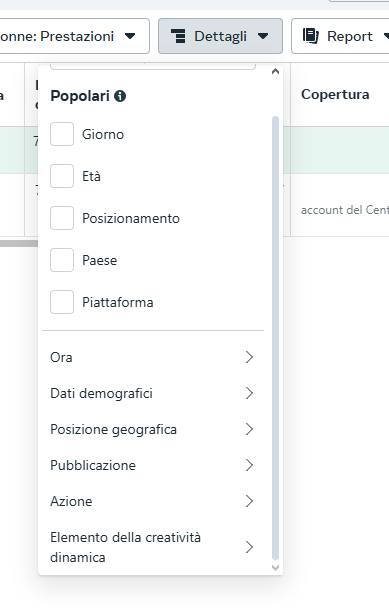 - Trova l’opzione che divide i risultati per “elemento di creatività dinamica”.